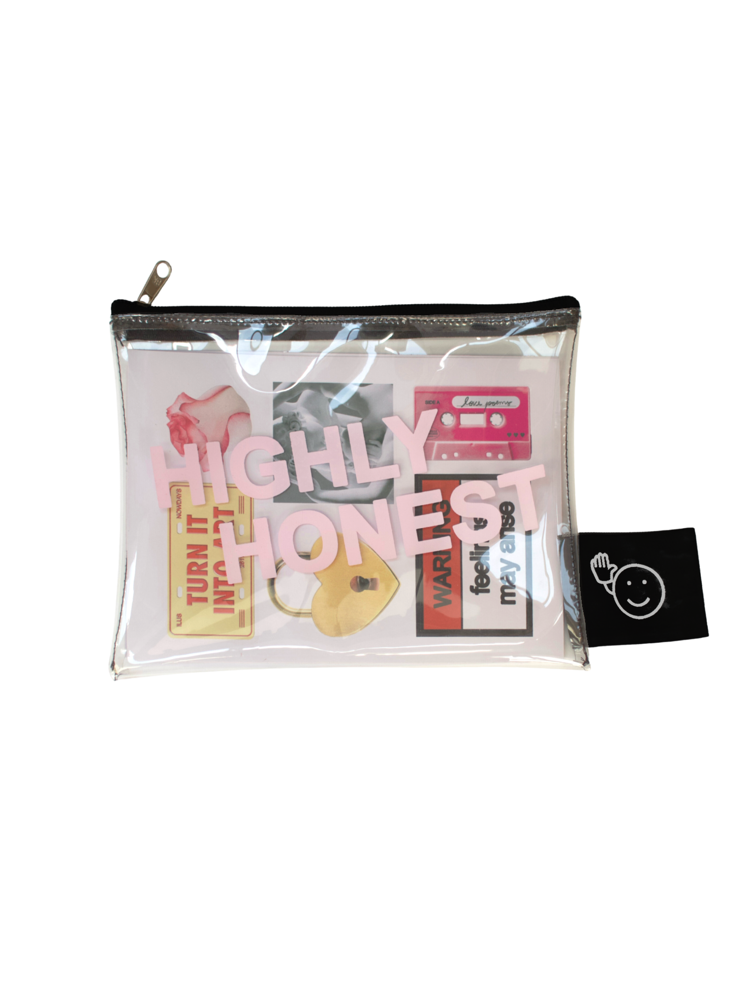 What it is: Pack de Adesivos + Mini Pouch Transparente ''Highly Honest''